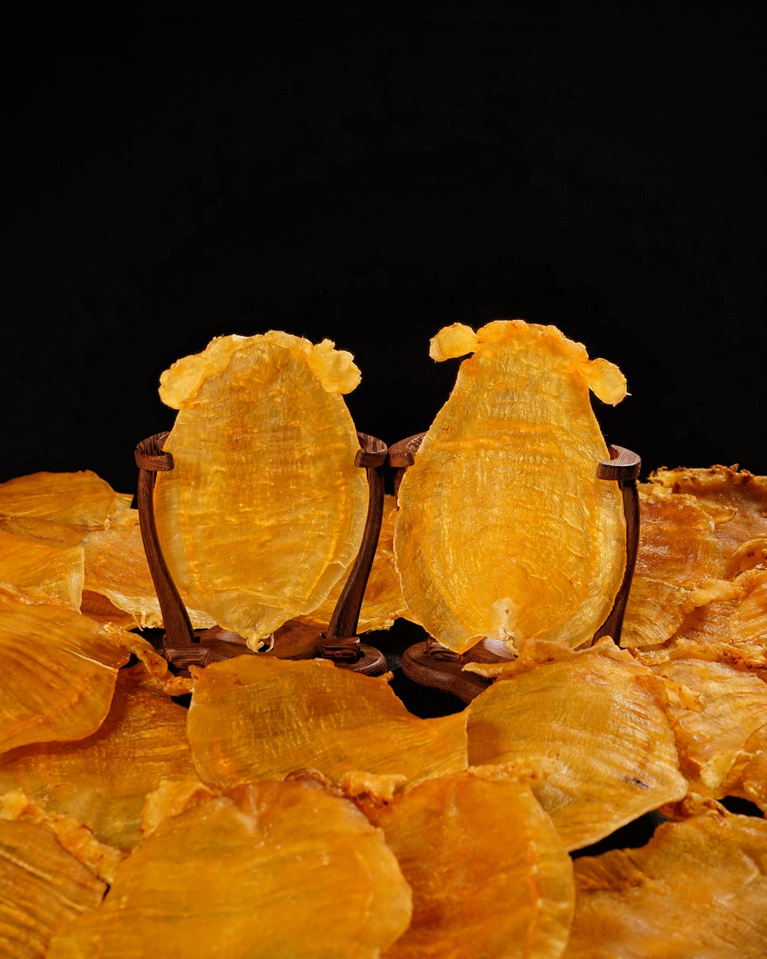 The precious fish maw possesses high nutritional value and is found in unpolluted marine environments. Consequently, it is relatively rare in the market. The rare fish maw is nicknamed "Redlip Croaker Fish Maw" due to its distinct feature of two large natural "ears" on its head.